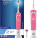 The Oral-B Vitality electric toothbrush range provides a clinically proven superior clean. 2D cleaning action oscillates and rotates to break up and remove up to 100% more plaque than a regular manual toothbrush and gently whitens teeth from day 1 by removing surface stains.