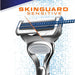• Unique SkinGuard feature positioned between the blades smooths skin and protects it from the blades