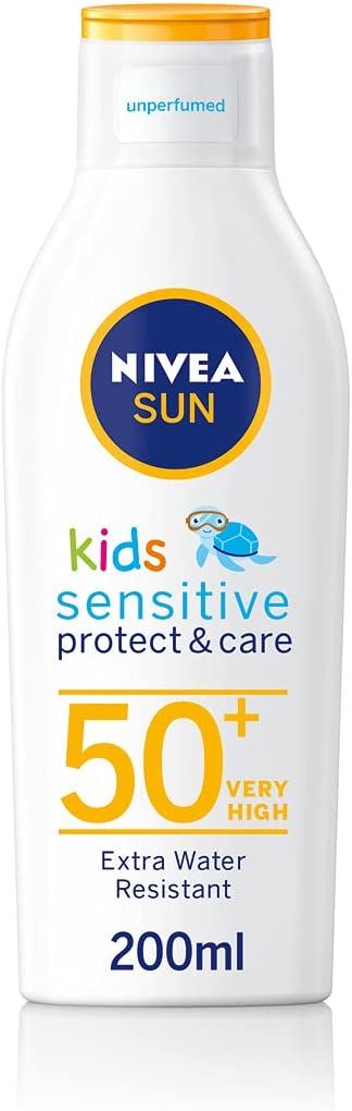 NiveaIn stockNivea Sun Kids Protect & Sensitive Sun Lotion SPF50 Water Resistant - 200ml Description NIVEA Sun Kids Protect & Sensitive Sun Lotion SPF...