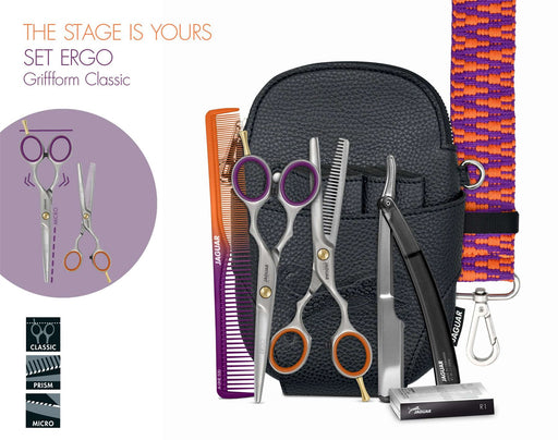 JaguarIn stockALL-IN-ONE STARTER KIT: Includes cutting scissors, thinning scissors, razor, comb, finger rings, and storage bag for a complete professional setu...