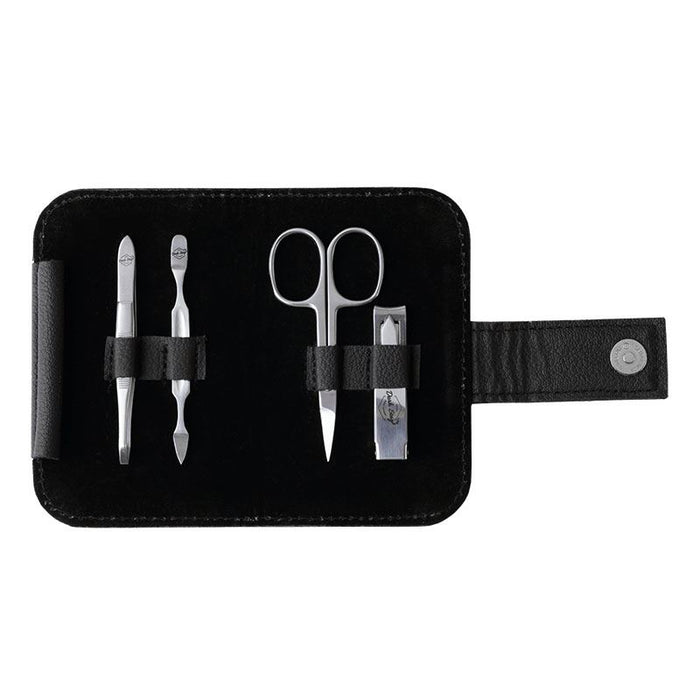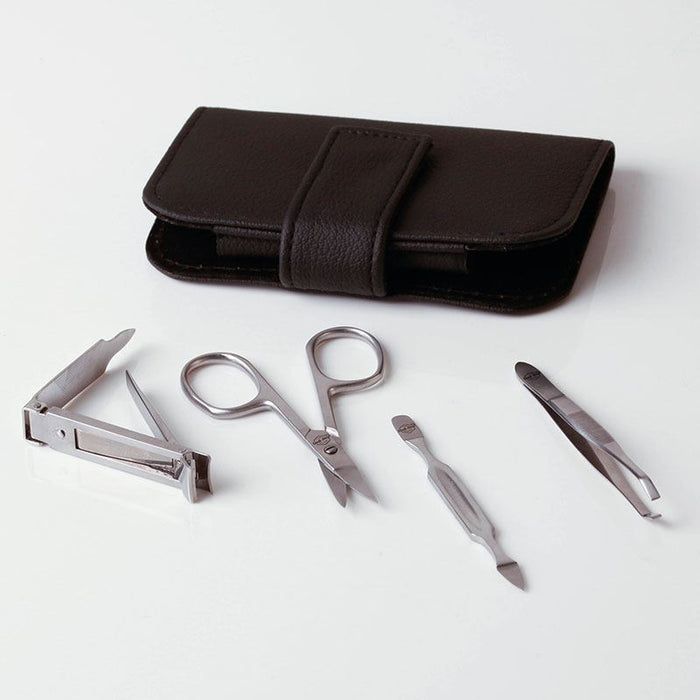 The Dark Stag mens manicure set includes a nail scissor, a real man’s fold away slimline nail clipper, tweezers and a cuticle pusher – all in stainless steel. The set is produced in durable stainless steel and stored in a smart wallet.