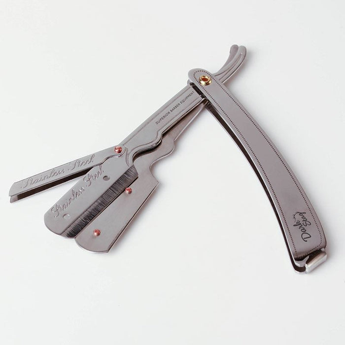 The Dark Stag Premium Razor (or Shavette) is made of stainless steel throughout, providing the quality weight and stability a barber needs in their every day work. This durable, solid tool guarantees no rust, whilst not compromising the stylish flair and modern design. A shavette or replaceable straight blade razor is a relative of the traditional cut throat razor, but with the benefit of easily changeable blades. This is ideal for barbers in terms of ease of use and hygiene. This straight razor uses half of a traditional double edge blade, meaning one full blade can be used for 2 clients.