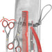 Set includes: Hairdressing and thinning scissors. R1 M Coral razor with metal blade holder for standard razor blades 10 blades included. Cutting comb A500-12, coral. Roll-up bag, silver tool bag.