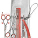 Set includes: Hairdressing and thinning scissors. R1 M Coral razor with metal blade holder for standard razor blades 10 blades included. Cutting comb A500-12, coral. Roll-up bag, silver tool bag