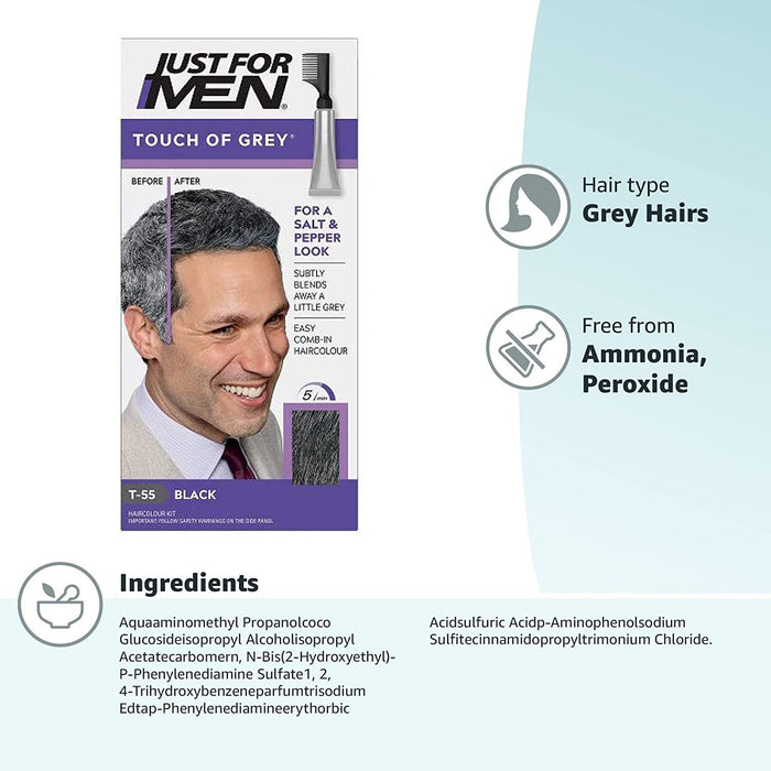Just For Men Touch Of Grey Black Hair Dye For A Natural Salt & Pepper Look T55