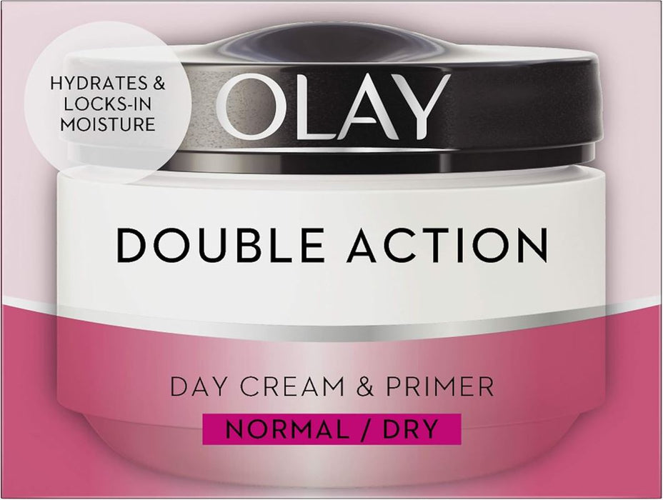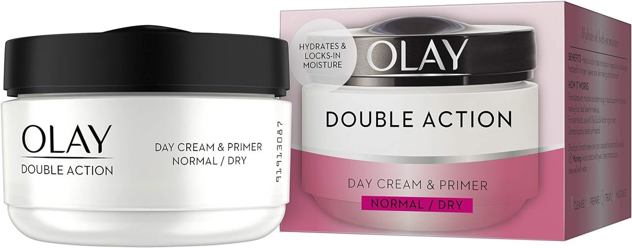 DOUBLE ACTION FORMULA: Olay Double Action Day Cream & Primer for normal to dry skin combines the benefits of a day cream and primer, offering lightweight hydration and moisture lock protection throughout the day.