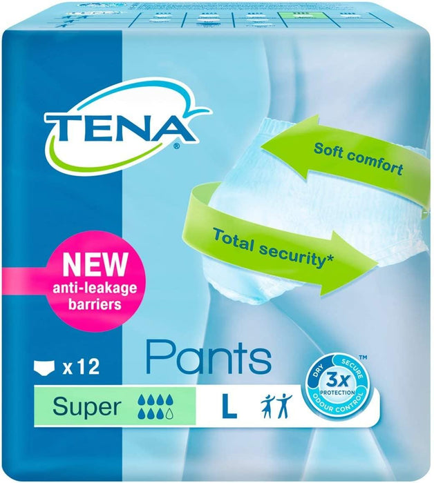 Tena Incontinence Pants Super With Odour Neutraliser - Large Pack of 12