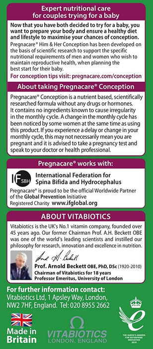 VITABIOTICS PREGNACARE HIM & HER - 60 TABLETS 3for2